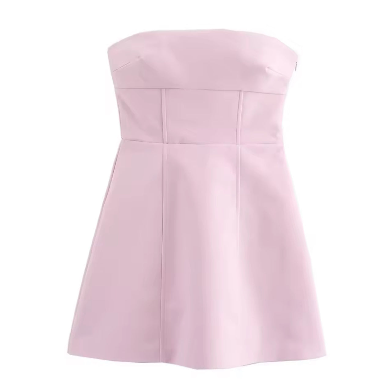Romantic and feminine, this blush pink strapless bow dress is designed to make a statement with effortless charm. The strapless neckline is accentuated by a dramatic oversized bow, adding a touch of playful sophistication while drawing attention to the shoulders and collarbone.